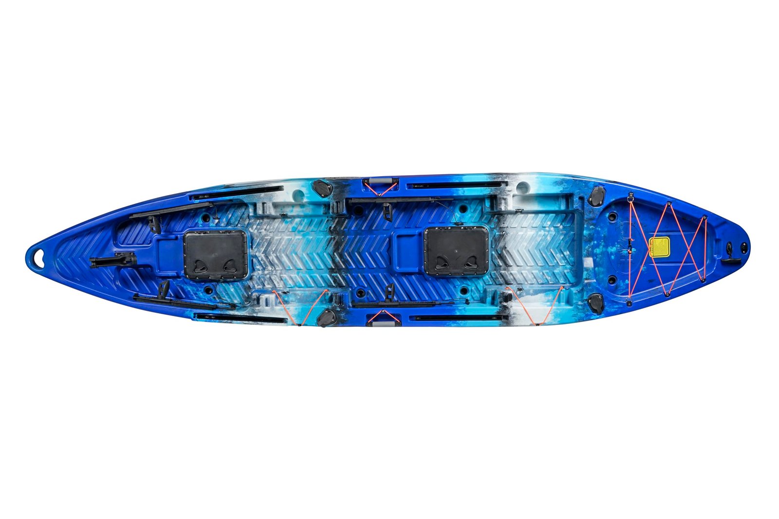 Includes 2 Adjustable Aluminum-Frame Seats, 2 Aluminum Paddles, 2 Watertight Hatches, 4 Built-In Rod Holders, 2 Paddle Parks, 1 Bungee Cargo Tie-Down