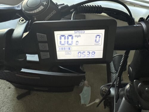 So far after riding 21 miles on power assist 1 or 2 and sometimes using power assist 5 on a few hills it used about 50 percent of the battery. The battery display shows bars that don’t always corelate to the bars on the battery itself. Where the battery on the dash would show 2 out of 5 bars the battery would show 4 bars out of 5. Also, the dash shows remaining voltage which is an indicator of the battery life.