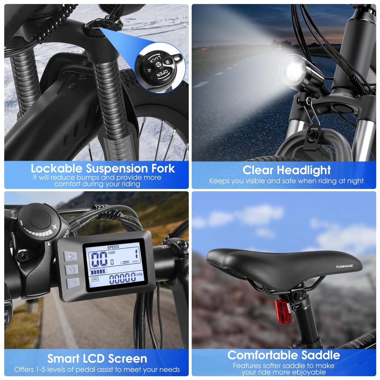 | Display | Back-lit LCD: speed, assist Lvl 1-5, odometer, battery |