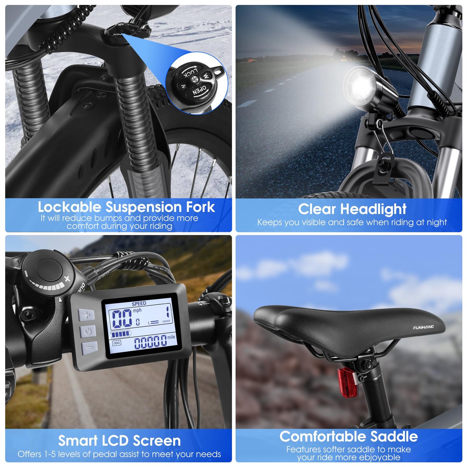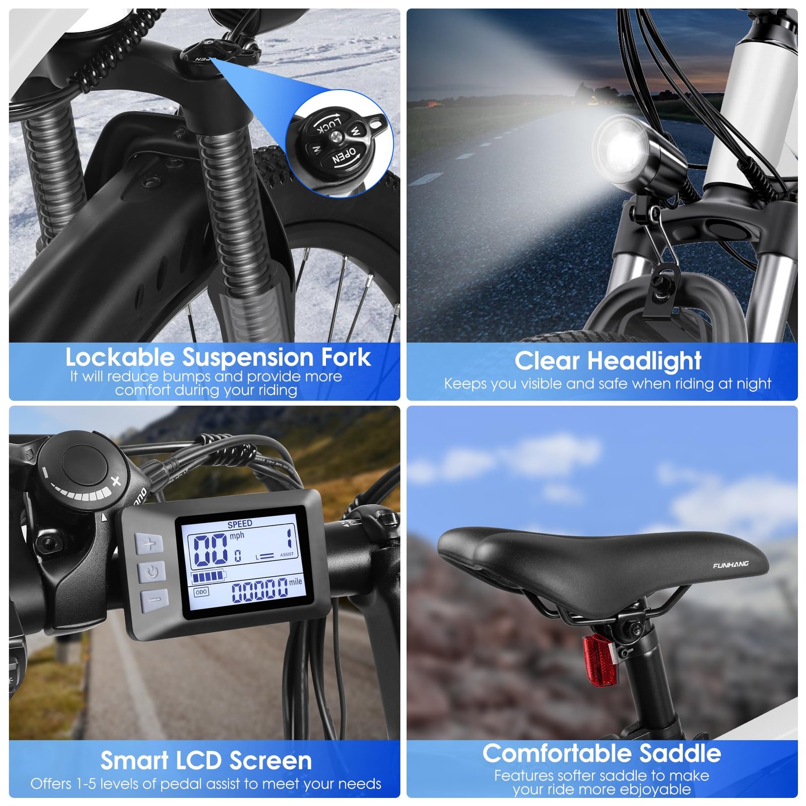 The ride is acceptable but can be teeth rattling on uneven terrain at higher speeds. I find that’s where you get what you pay for. Although totally acceptable beware bumps can be harsh especially at higher speeds. The front shock absorber helps but is not the best. I mostly ride in power assist 1 or 2 and push it to 4 or 5 uphill. Going uphill is what this bike does well. I never used throttle only for hills.