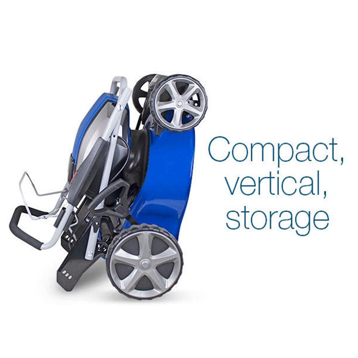 No assembly needed, just unfold the handles, which features compact vertical storage.