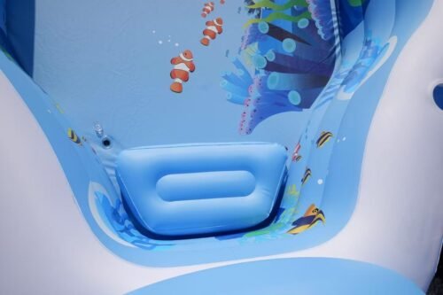 The underwater ocean design is vibrant and attractive, adding a playful touch that kids will definitely love. Setup is straightforward, and the seats and backrests inside make it easy to relax and enjoy.