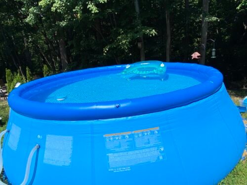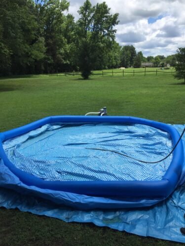 Also make sure to purchase the cover for this pool it acts as a solar panel and heats the water up quite nicely and also keeps stuff out of the pool. We think it is totally worth the price