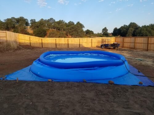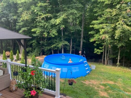 I’m sharing pictures of the pool when it’s level and filled. You’ll also see a photo of my 5’2” son standing beside the pool when it’s all set up. The pump works pretty good too. Despite the stress and effort, it was worth it in the end. When set up correctly, it’s definitely an enjoyable pool!