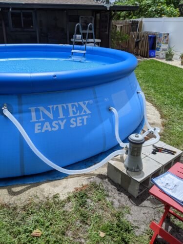 Our first real pool as adults, so setting up the pump took about 20 mins. We wanted to make sure we got it right.