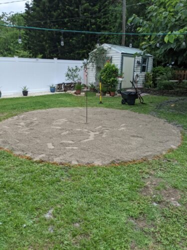 Spent a few hours leveling the ground, removed rocks and debris, racked it all out nicely and leveled.
