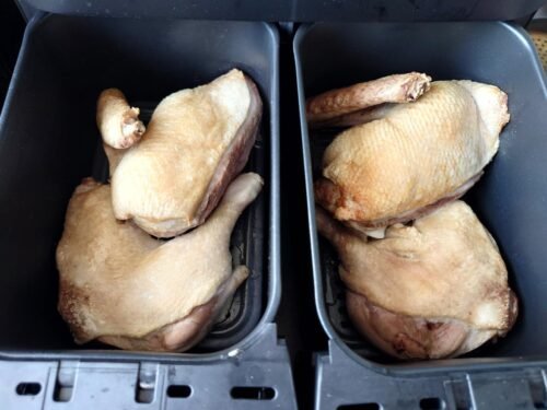As my images show, this "compact cooker" roasts some great chicken quarters. The same applies with the chicken as it does the duck, partially roast the chicken and finish off using the max crisp setting which operates at 240c and that is 10c higher than domestic ovens so it cooks and crisps skin perfectly and quickly.