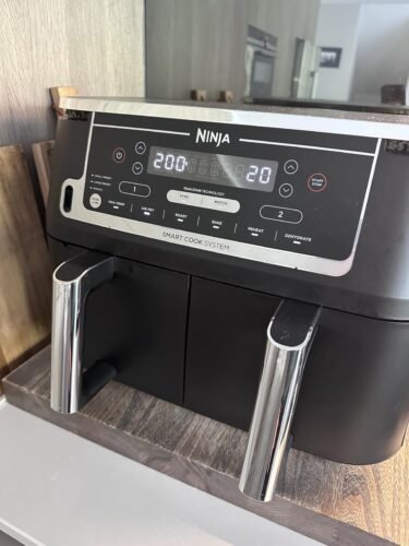 - What’s in the Box: Ninja Dual Zone Air Fryer, 2 x 3.8L non-stick drawers, 2 x crisper plates, UK plug, and a Chef-created recipe guide.