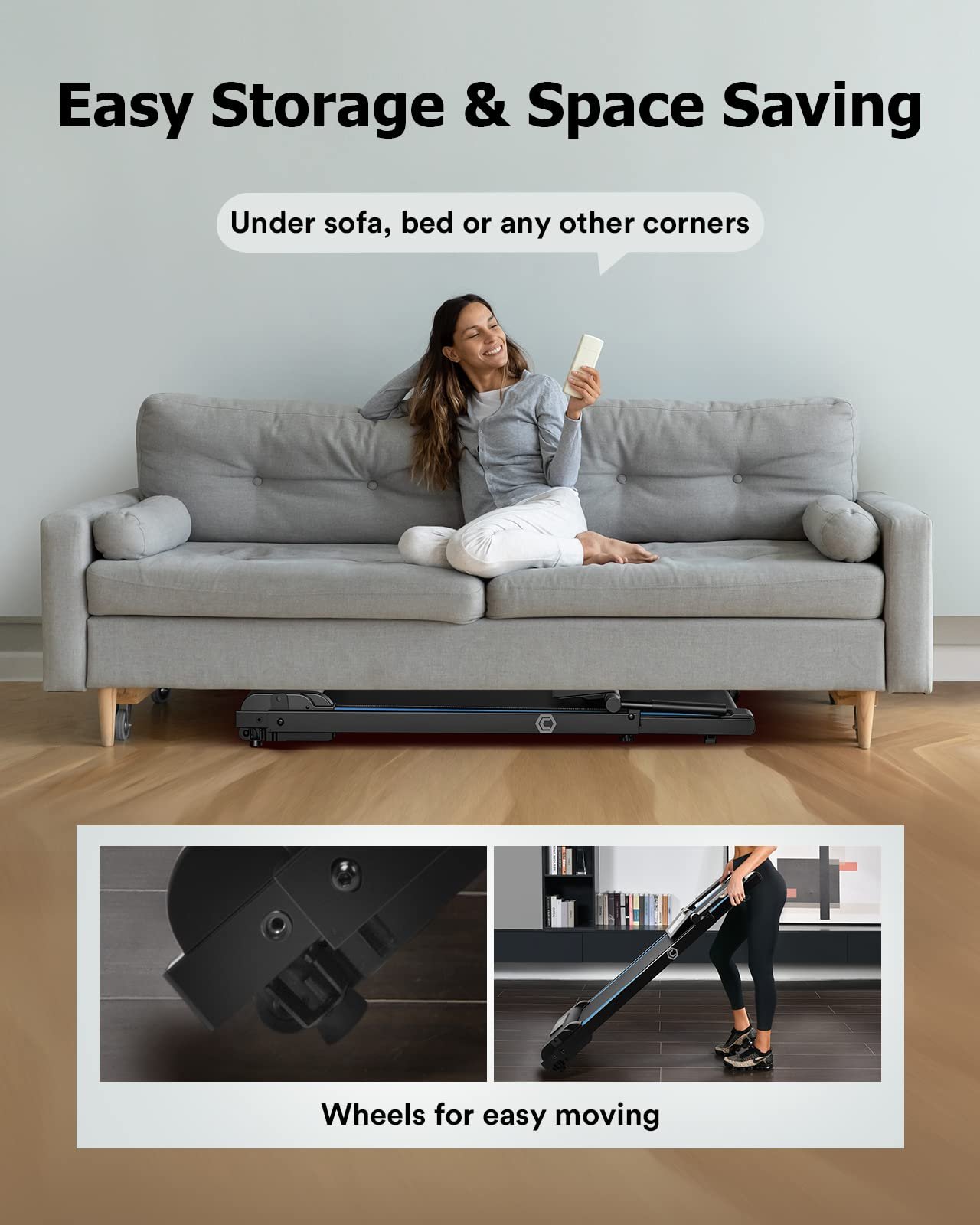 The UREVO Under-Desk Walking Pad Treadmill combines space-saving portability with powerful performance. With a 2.5 HP motor delivering 1–10 km/h, a robust 100 kg user capacity, and a user-friendly LED display plus remote control, it’s perfect for home or office use.
