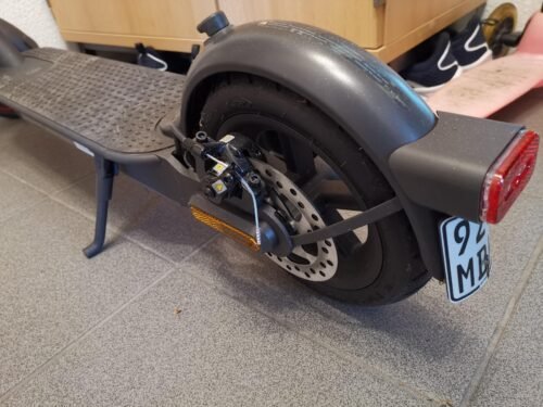 I did it, but with a screw clamp. So now on to the scooter. He picked up the back of the license plate. It's the screws behind the light. Only accessible by removing the tire. New screws in ready. Have probably gone out due to a lot of wobbling.. it's hard to see you have to know where it is. But the scramble was hard on my cookie. All in all, the screw quality could be better. Many of the replaced screws are worn out after 3 times. But I've put better ones in there everywhere. I would say you don't even notice the energy recirculation. Even not if you push it over 5 kilometers, then the battery is only looking for 2 bus 3%, so not worth mentioning. I wouldn't call it energy repatriation. Driving experience is always great and you are safe. The best device on the market for the price. All that is even cheaper is scrap