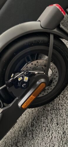 Ich brauche bei dem Tempo keine Scheibenbremsen. Die Bremsen reichen völlig aus. Zudem sind sie wartungsarm und der 4 Ultra hat zudem Reifen, die kleinere „Eindringlinge“ von selbst wieder verschließen und der Motor und die Bremsen sind wasser- und staubgeschützt.