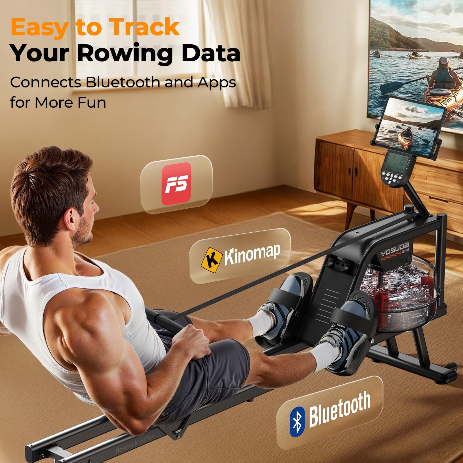 YOSUDA Magnetic & Water Rowing Machine – Foldable Home Rower, 159 kg Capacity, Bluetooth App, Tablet Holder & Comfortable Seat photo review