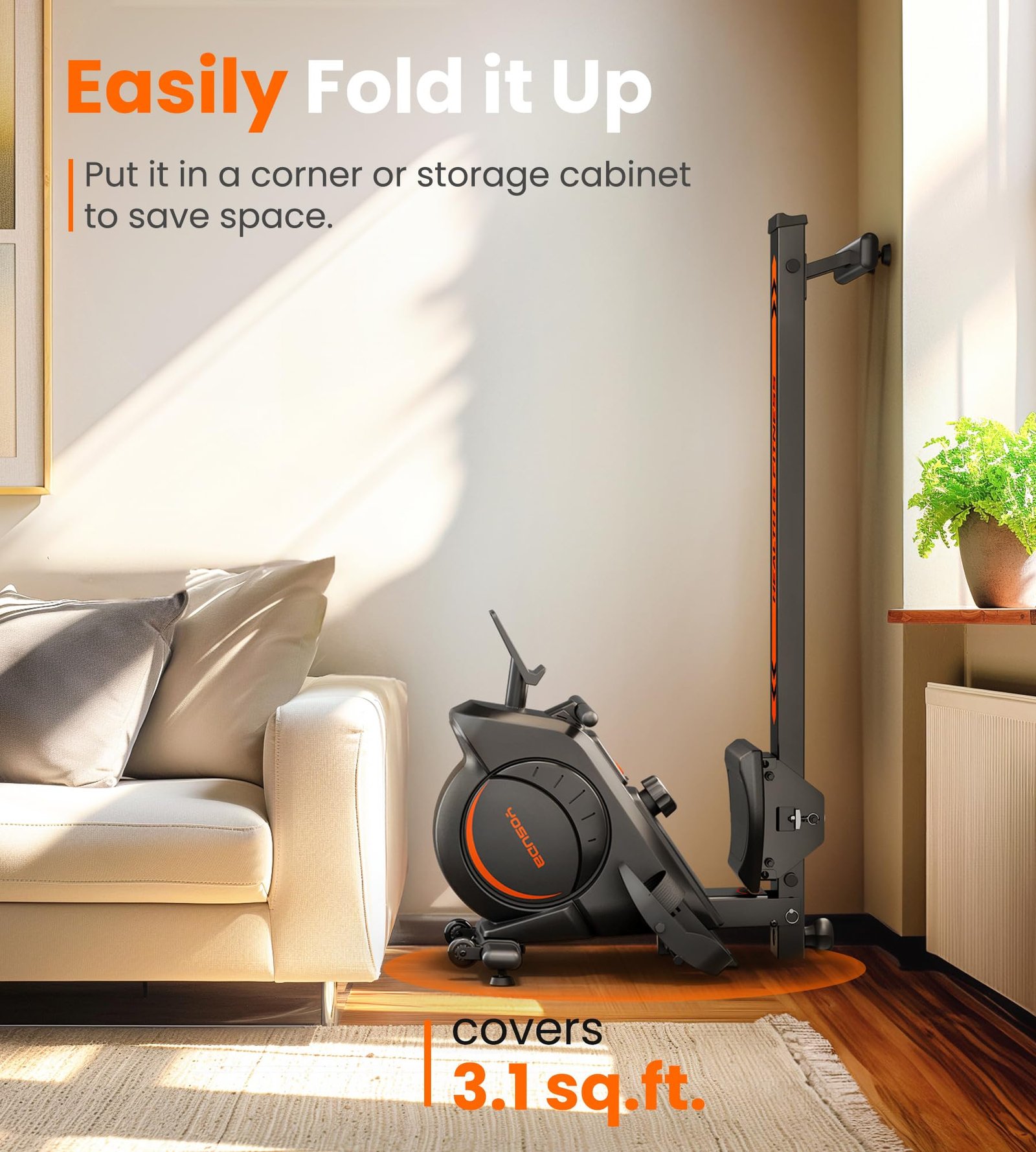 From a functional standpoint, this rowing machine delivers a smooth and natural rowing motion, with a convenient dial that allows me to easily adjust the resistance to suit my workout needs. Bonus, it's compact and small size!