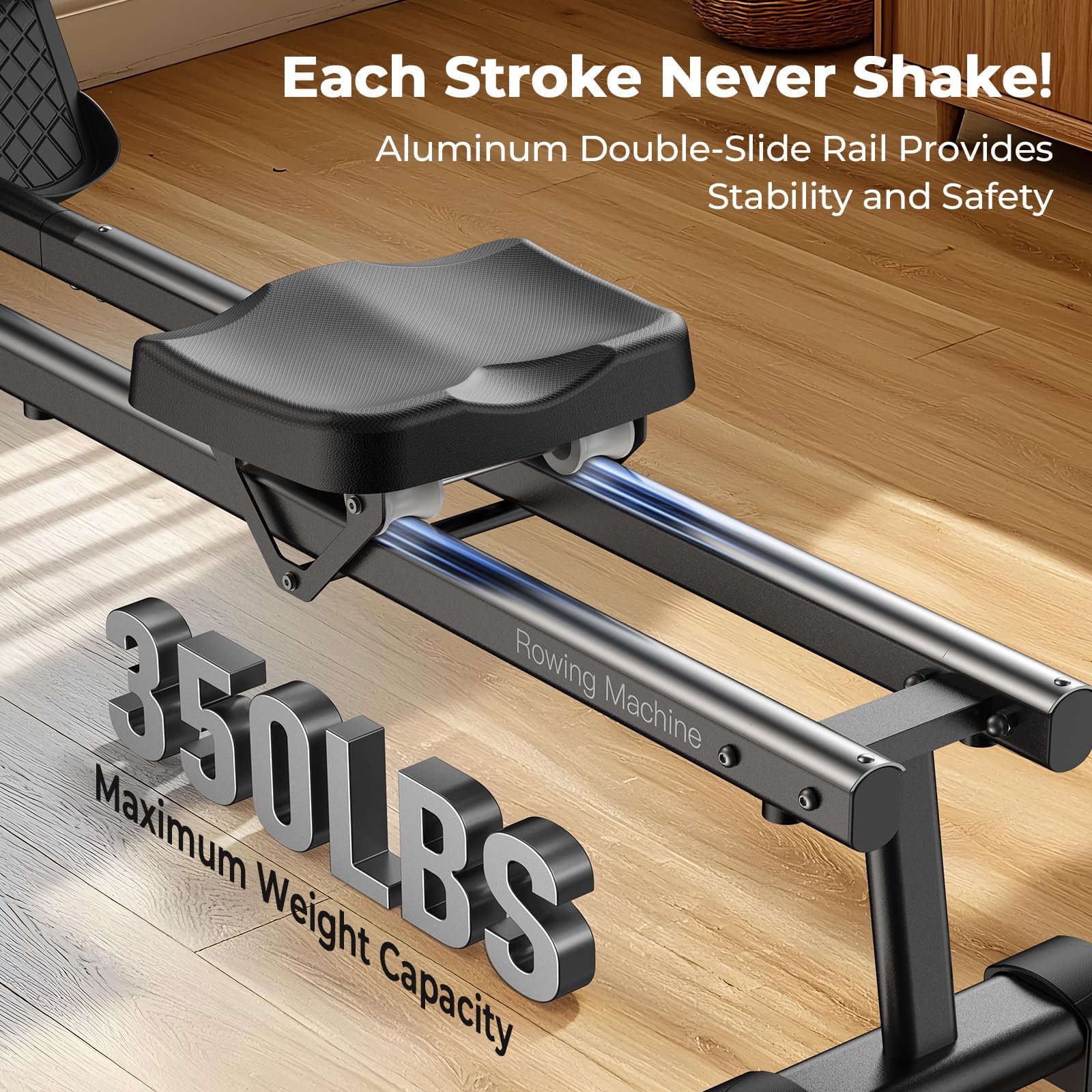 First off, the build quality is impressive. With a 350 LB weight capacity, this rowing machine feels sturdy and durable. It handles my workouts with ease, and I appreciate that I can rely on it for years to come.