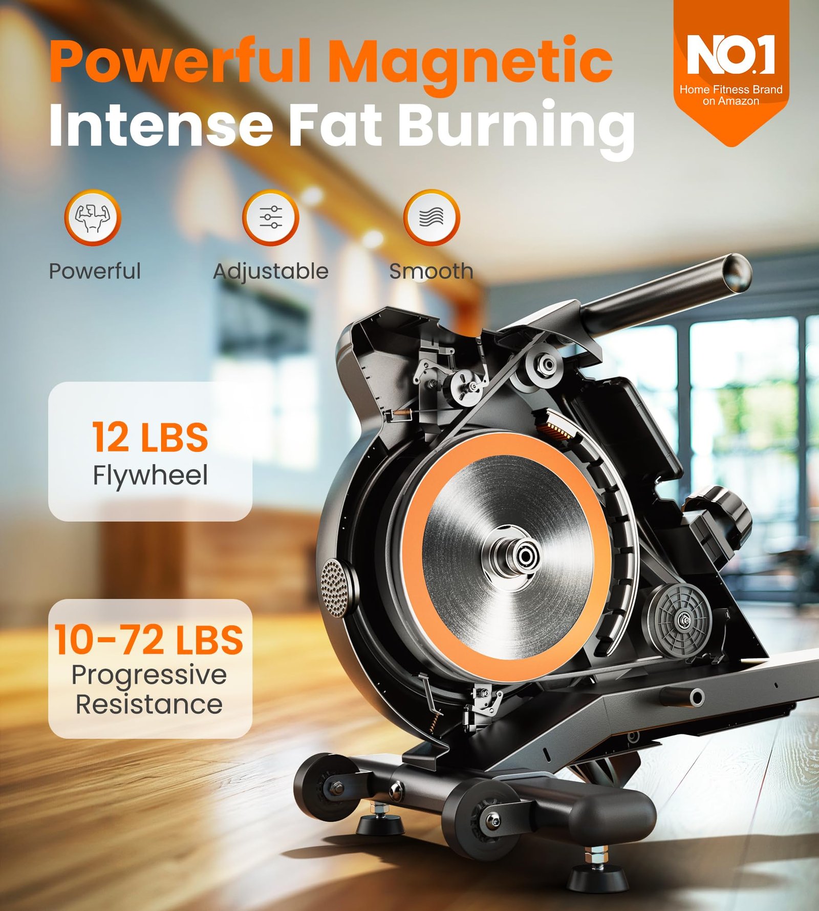 • Super Quiet Rower—Magnetic resistance delivers an ultra-smooth, whisper-quiet workout without disturbing your household.