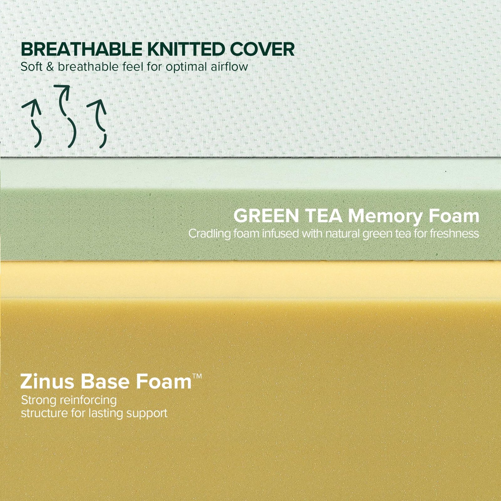 • Refreshing green tea & moisture‑absorbing charcoal infused into three layers of top‑notch foam for full‑body pressure relief.