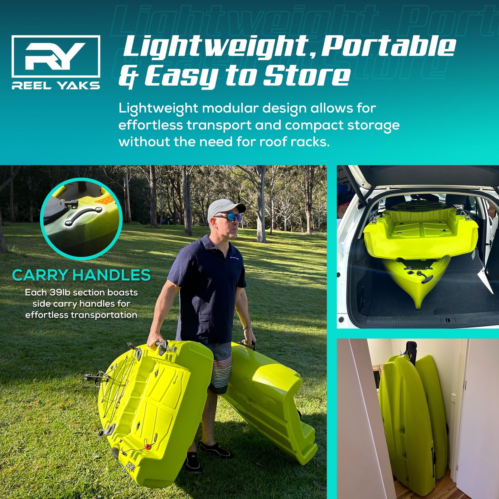 - Ultralight & Transportable: Each 39 lb module features side carry handles for easy one- or two-person lifting. Fits easily in a hatchback or small storage space—no garage required.